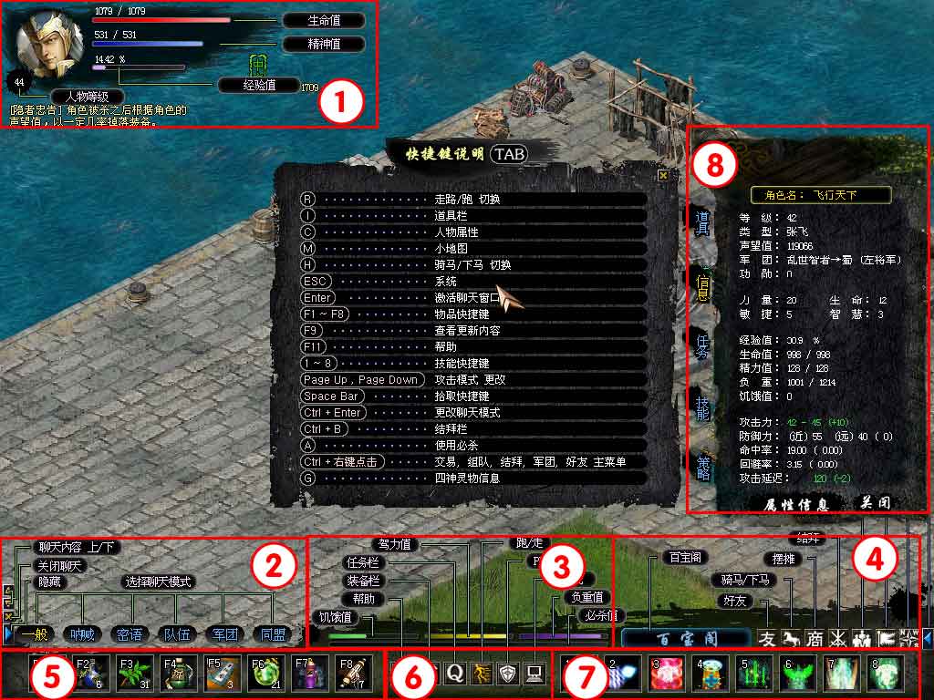 技能快捷栏:把常用的技能或者策略设置到 1~8 以后,可以方便的使用适当的技能和策略。把要使用的技能和策略拖到自己想要用的按键上面就能完成设置。想要取消快捷栏上的技能或者策略,双击鼠标左键就能完成操作。 ※ 使用聊天栏的时候无法使用快捷键。 -------------------------------------------------------------------------------------------- |