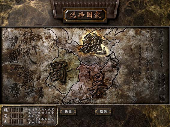 可以选择魏国、蜀国、吴国当中的一个国家,每个国家都有人数上限,如某国家在线的玩家超过该国家的上限,就无法选择该国家。