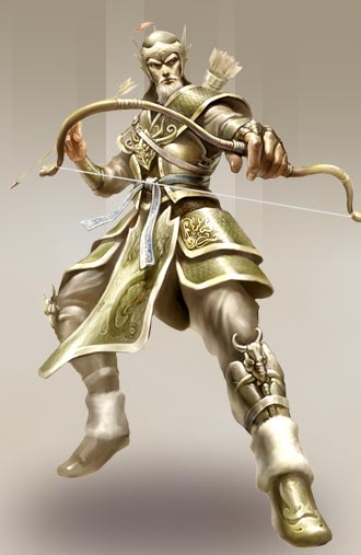 黄忠,蜀国五虎大将最后一位。字汉升,南阳人。最初在刘 表属下任中郎将镇守长沙攸县。当曹操南下时,仍忠守长沙。后刘备派关羽攻长沙时,城破被困,降了刘备。刘备平荆南四郡后,随其进取四川,常打先锋,勇冠三军。建安二十四年,刘备取汉中时,黄忠在定军山用计斩曹军大将夏侯渊,大败曹军,被封为征西大将军。使一口大刀,箭法精良,百发百中,年岁虽大,却常不服老。刘备为汉中王后,拜忠为后将军,后赐关内侯。220年,黄忠病逝于营寨中,享年七十五岁。